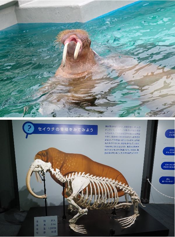 セイウチの骨格標本も面白かったです。間近でみると改めて牙の大きさがわかりますね。