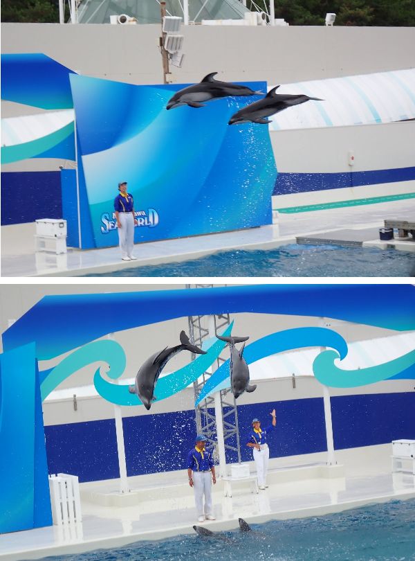 立ち泳ぎなども見せてくれて、イルカの身体能力がよくわかるイルカショーらしいパフォーマンスでした。