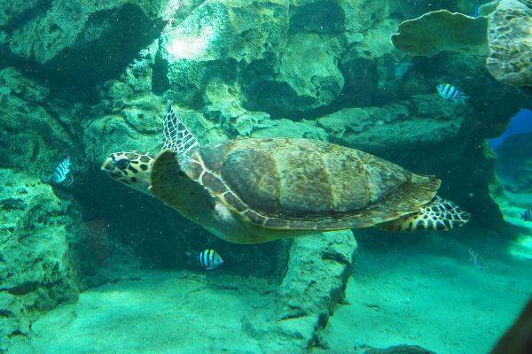 特にブタバナガメの鼻が本当に豚みたいで、息子は何枚も写真を撮って楽しんでいました。時間になるとスコールに見立てた雨が水槽内に降るという演出もありました。