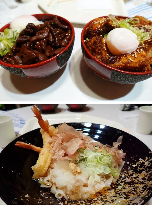 ランチは館内のレストラン・アリバダで、名古屋名物のどて煮や味噌カツやきしめんなどを食べました!