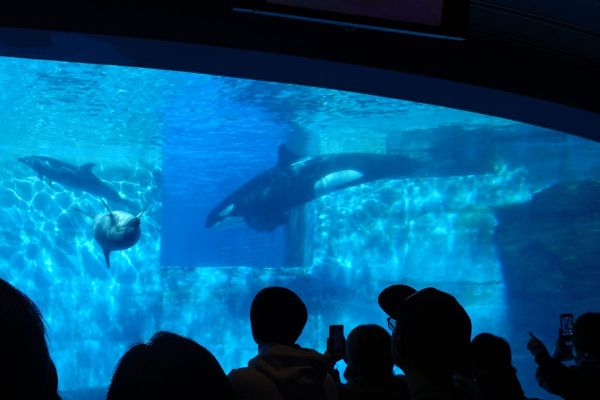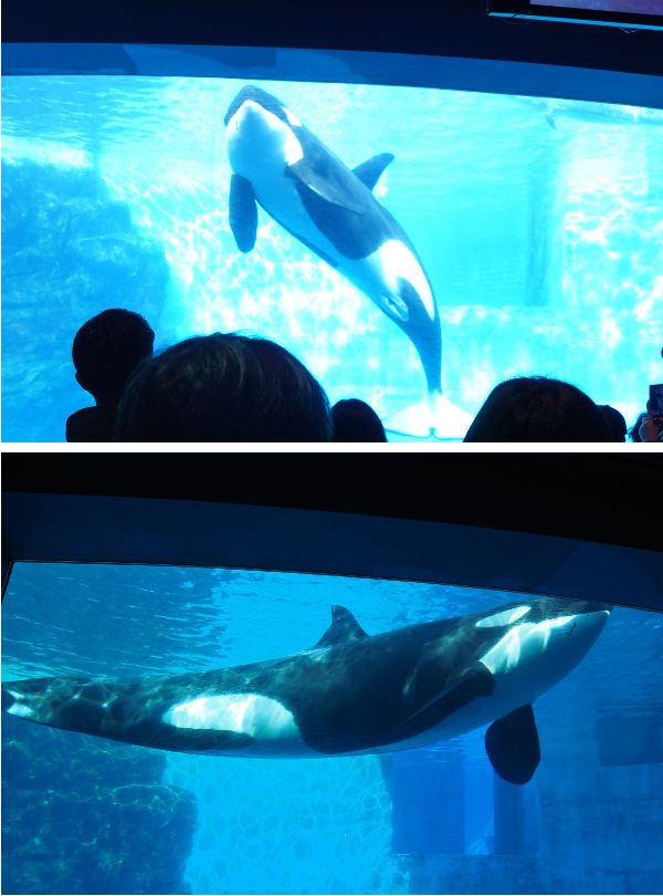入口を入ってすぐにあるシャチの水槽の前には、予想通りたくさんの人が集まっていました。